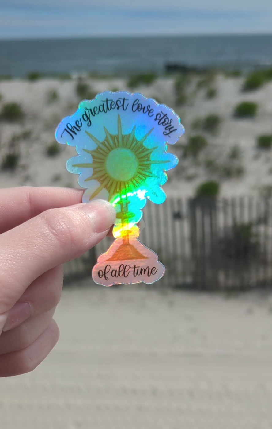 This sticker measures 2x3" and is made from a holographic vinyl with a gorgeous rainbow effect! Put on notebooks, laptops, and more, and use it to spread the love of God with others.